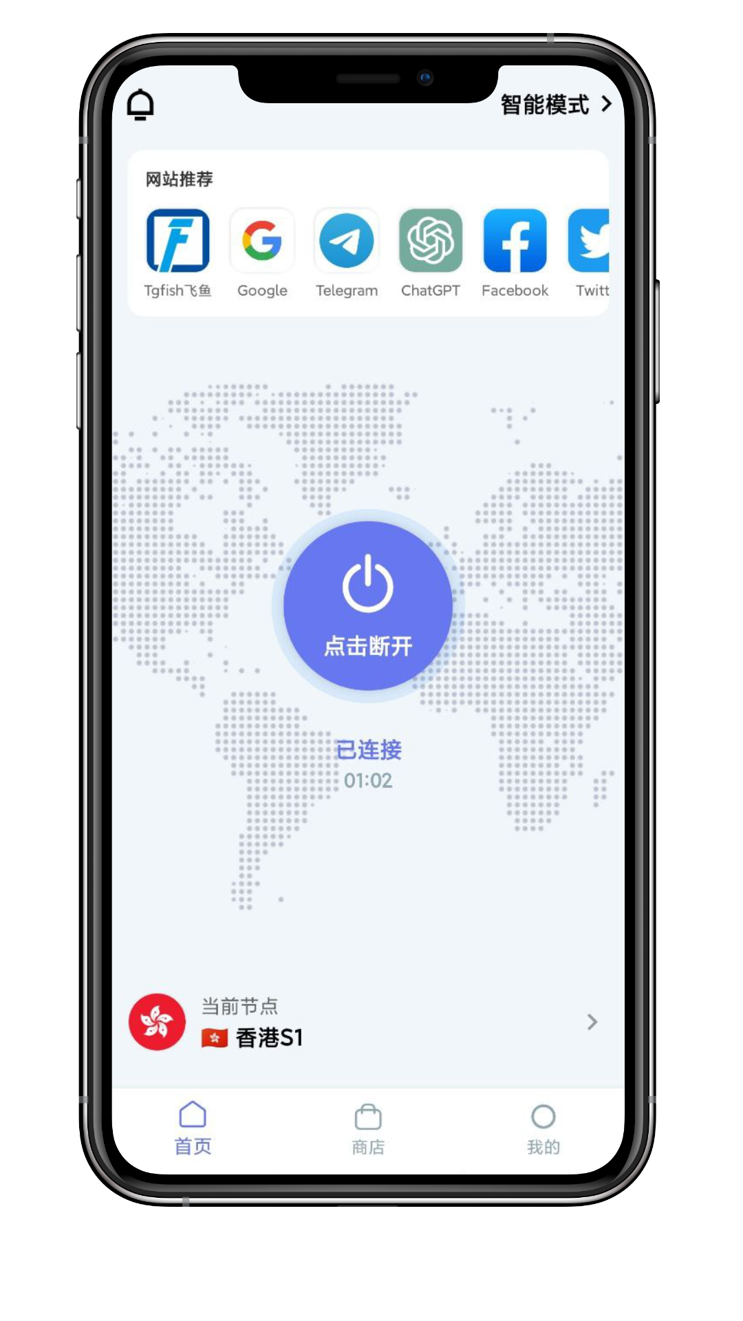 Tgfish飞鱼是操作最简单的 VPN,一触即连,无限畅享。